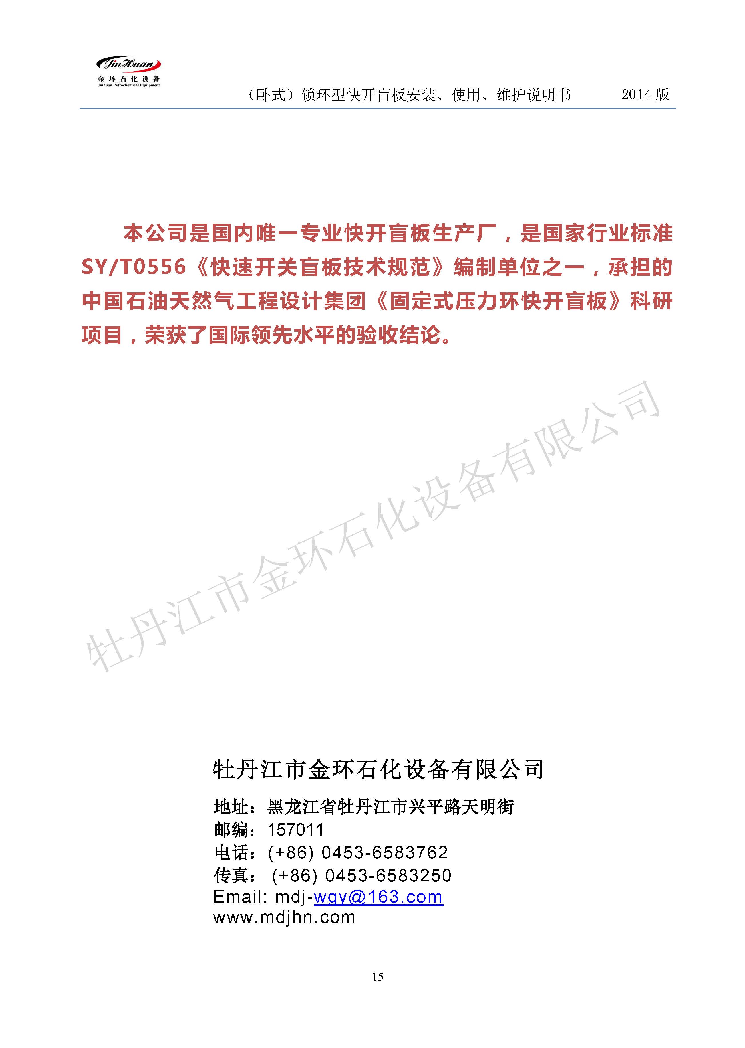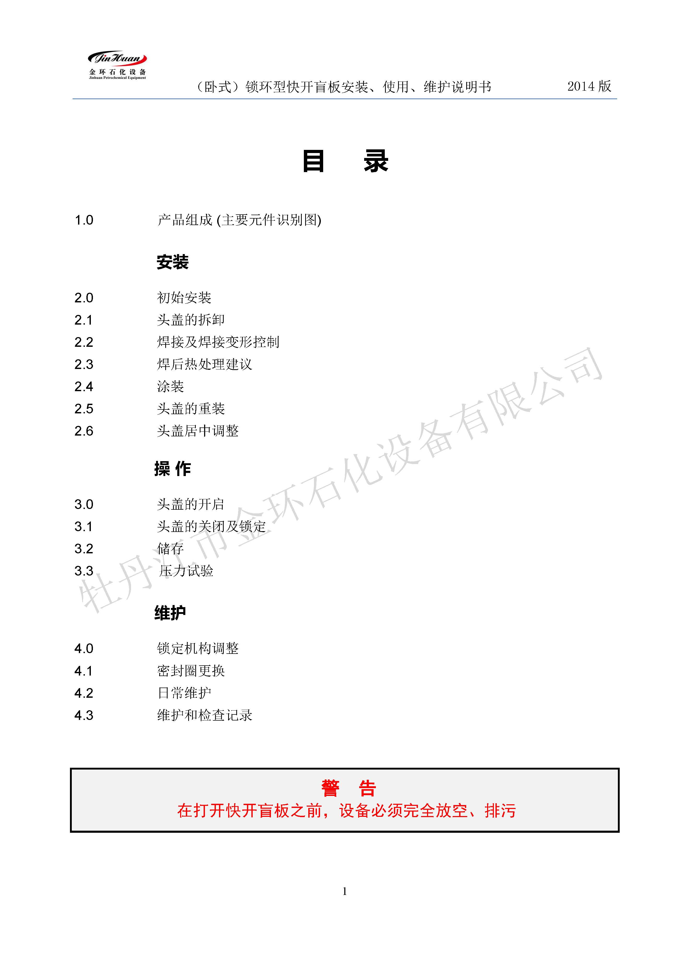 鎖環(huán)臥式快開(kāi)盲板說(shuō)明書(shū)