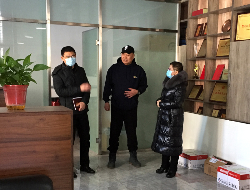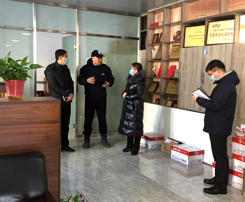 2021年12月01日,牡丹江市愛民區(qū)人大何主任(圖左1),協(xié)同愛民區(qū)營商局主要領(lǐng)導(dǎo)(圖右1),蒞臨我公司考察企業(yè)營商環(huán)境,幫扶企業(yè)解決實際困難。